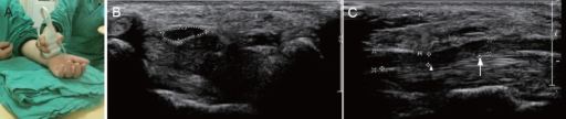 Cross-sectional anatomy of the carpal tunnel at the level of the hook of hamate. The median nerve lies superficially, just deep to the transverse carpal ligament (flexor retinaculum). The nine flexor tendons (4 FDP, 4 FDS, FPL) fill the tunnel. The median nerve is flattened and enlarged proximally. The thenar branch exits radially. Release involves dividing the transverse carpal ligament while protecting the nerve and palmar cutaneous branch.