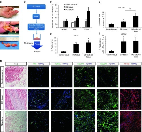 Describe the anatomy of the palmar fascia and the pathological cords in Dupuytren's disease.