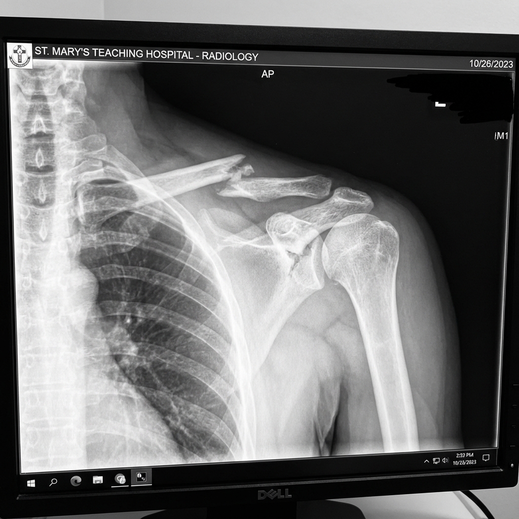 Source: AI-Generated: Floating Shoulder (Scapula Neck + Clavicle Fracture) Radiograph • OrthoVellum AI • OrthoVellum Educational Use