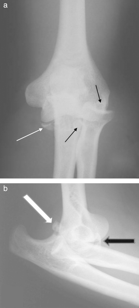 Define the terrible triad of the elbow. Describe the anatomy of elbow stability and the structures involved.